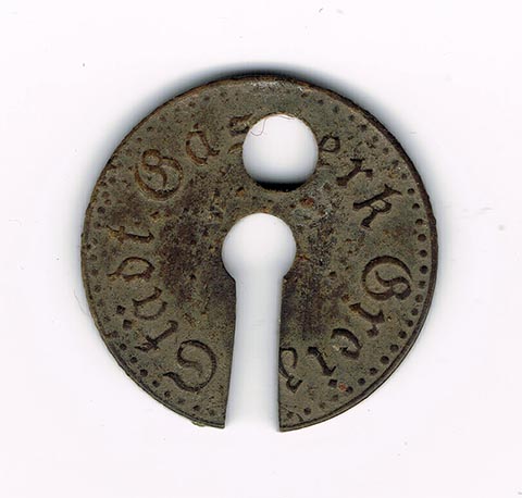 Emma Schneeweiß war die Ehefrau von Otto Schneeweiß, dem Eigentümer des Hauses in den 1920er bis 1940er Jahren. Auf der Marke steht „E. Schneeweis“. Dabei handelt es sich nicht einfach nur um eine Aluminiumplatte. Mit diesem Gegenstand ist eine sehr interessante Geschichte des Alltagslebens im vergangenen Jahrhundert verbunden. Vor hundert Jahren war dieses Objekt unter Hausfrauen sehr verbreitet. Frauen bereiteten zu Hause den Teig vor, da sie selbst keinen Backofen besaßen. Anschließend brachten sie den Teig zu speziellen Bäckereien, wo er gebacken wurde. Dort wurden solche persönlichen Namensmarken benötigt, da viele Menschen diesen Service nutzten. Die Marke wurde mit der spitzen Seite in den Teig gesteckt und so in den Ofen gegeben. Auf diese Weise konnte keine Verwechslung entstehen, wem welches Brot oder Gebäck gehörte.