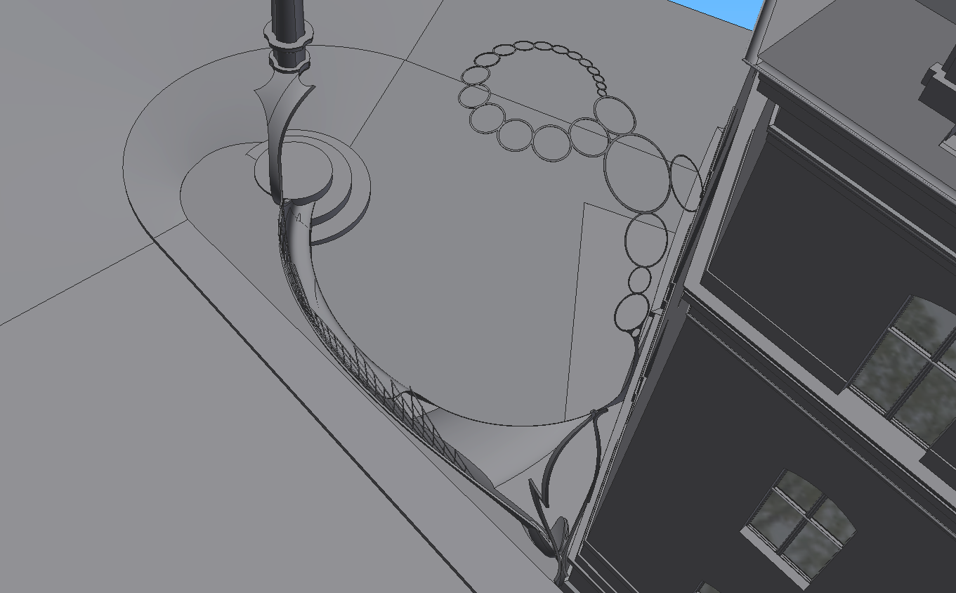 Der Memorialentwurf ist inzwischen abgeschlossen. Er besteht aus miteinander verbundenen Segmenten: Obelisk, Sitzbank, strahlende Sonne, Wellen, Herz, Flamme, Baum – alle Elemente gehen fließend ineinander über und bilden gemeinsam eine in sich geschlossene Sphäre.