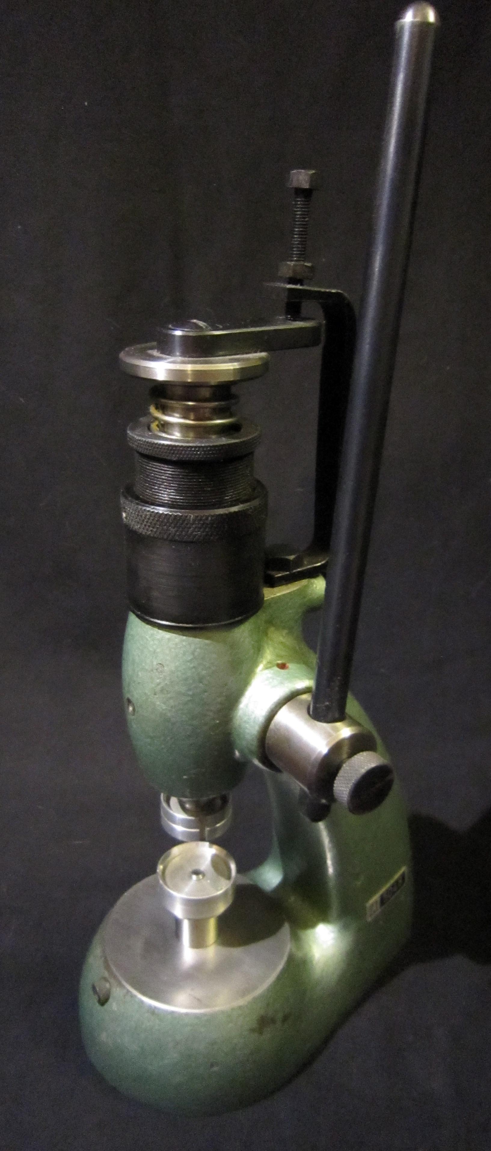 Dieses Gerät ist vielseitig einsetzbar, beispielsweise zum Aufpressen von Rädern auf Triebe. Dabei wird der Sitz auf dem Trieb leicht verstemmt, sodass ein Verdrehen des Rades auf dem Trieb verhindert wird. Mit diesem Gerät lassen sich auch andere Teile eines Uhrwerks – wie Buchsen, Wellen oder Steine – präzise und sauber auf- oder abpressen. Ebenso können feine Arbeiten wie Nieten oder Bördeln ausgeführt werden.