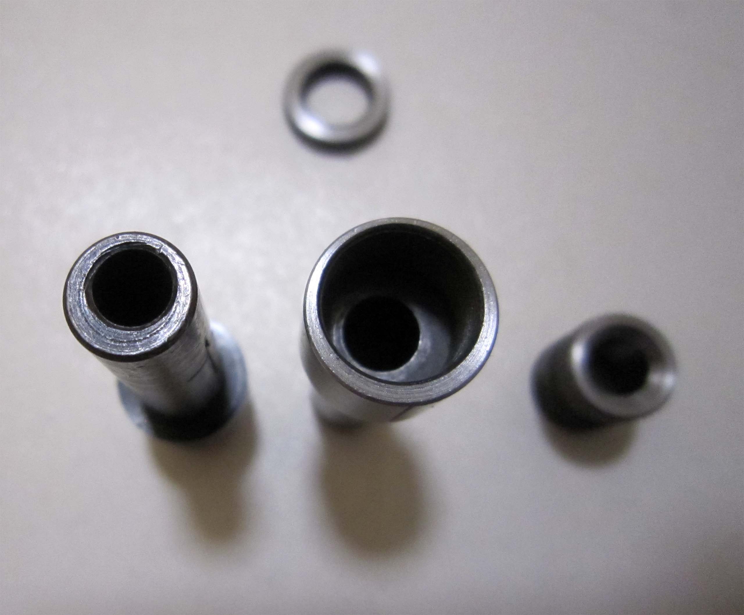 3 Hülsen mit Fuss und Bohrung 0,90 mm; 1,10 mm; 1,40 mm