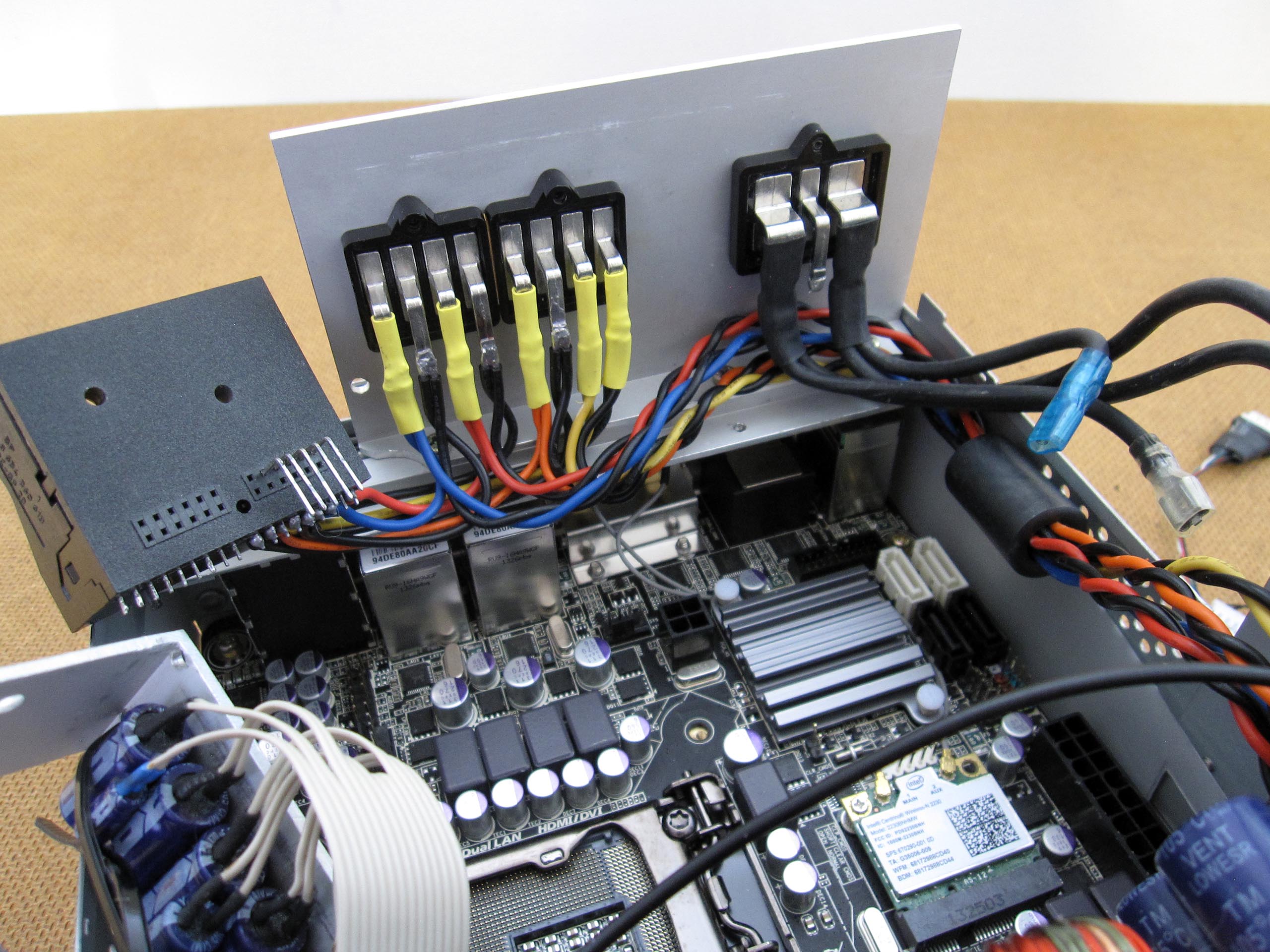 Ich verwende die im Prozessor integrierte Grafikeinheit. Wenn ich jedoch die Treiber installiere, funktioniert der HDMI-Anschluss am Mainboard nicht mehr. Ein Test mit einem anderen Mainboard bestätigte dieses Problem. Mit einer externen Grafikkarte und installierten Treibern funktioniert das Display über HDMI. Nach Kontakt mit dem Intel-Kundendienst wurde vermutet, dass die Intel HD Graphics 3000 defekt sei. Daraufhin kaufte ich einen Intel Core i7-3770K mit Intel HD Graphics 4000. Nun funktionieren die HDMI-Ausgänge am GA-H77N-WIFI. Allerdings funktionieren sie auf dem anderen Mainboard nicht mehr. Beim Versuch, die Treiber zu installieren, friert das Betriebssystem ein. Interessanterweise funktionieren die HDMI-Anschlüsse der externen Grafikkarte in Kombination mit dem Intel Core i7-3770K ebenfalls nicht. Das BIOS des etwas älteren Mainboards wurde aktualisiert, sodass der neue Prozessor eigentlich unterstützt werden sollte. Das Display habe ich über HDMI angeschlossen. Dafür habe ich das Kabel selbst angefertigt. Zudem ist der HDMI-Stecker relativ kompakt und passt genau in das PC-Gehäuse.