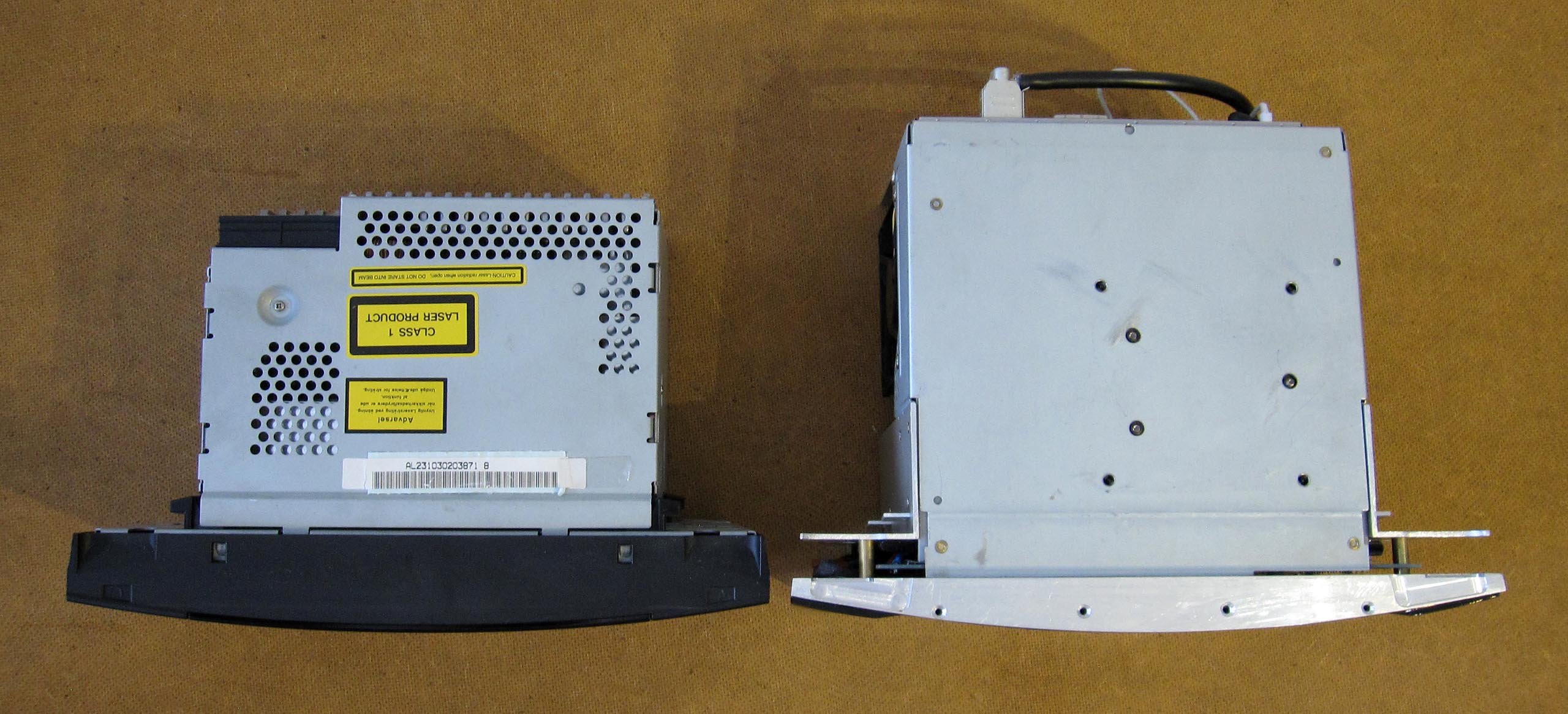 Unter dem Radio befindet sich hinter der Tastenleiste ein Fach. Nach Betätigung der Taste fährt die Klappe nach vorne aus und hebt sich an. Dort sitzt ein 6-fach-CD-Wechsler, den ich nicht mehr benötige und daher entferne.
