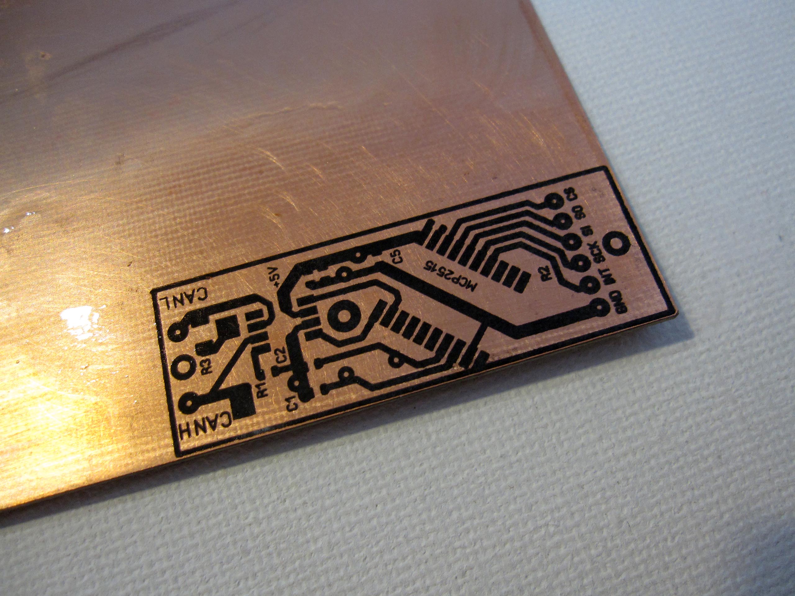 Ich kaufte ein Arduino 2560 und entwickelte eine eigene Leiterplatte für den CAN-Bus. In der ersten Version wurden die Mikrocontroller MCP2551 und MCP2515 mit 5 V vom Arduino versorgt. Dabei wurde das Arduino beschädigt. Der Spannungsregler auf dem Arduino lieferte beim Umschalten der Stromversorgung von USB plötzlich 12 V statt 5 V, wodurch sowohl der Atmega 2560 und der Atmega 16U2 als auch MCP2551 und MCP2515 zerstört wurden. In der zweiten Version erhielt meine CAN-Bus-Platine daher eine eigene 5-V-Stromversorgung. Zusätzlich verbaute ich einige SMD-Elektrolytkondensatoren. Das Arduino bekommt nun eine eigene Versorgungsspannung von etwa 10 V. Dioden verhindern dabei einen Rückstrom.