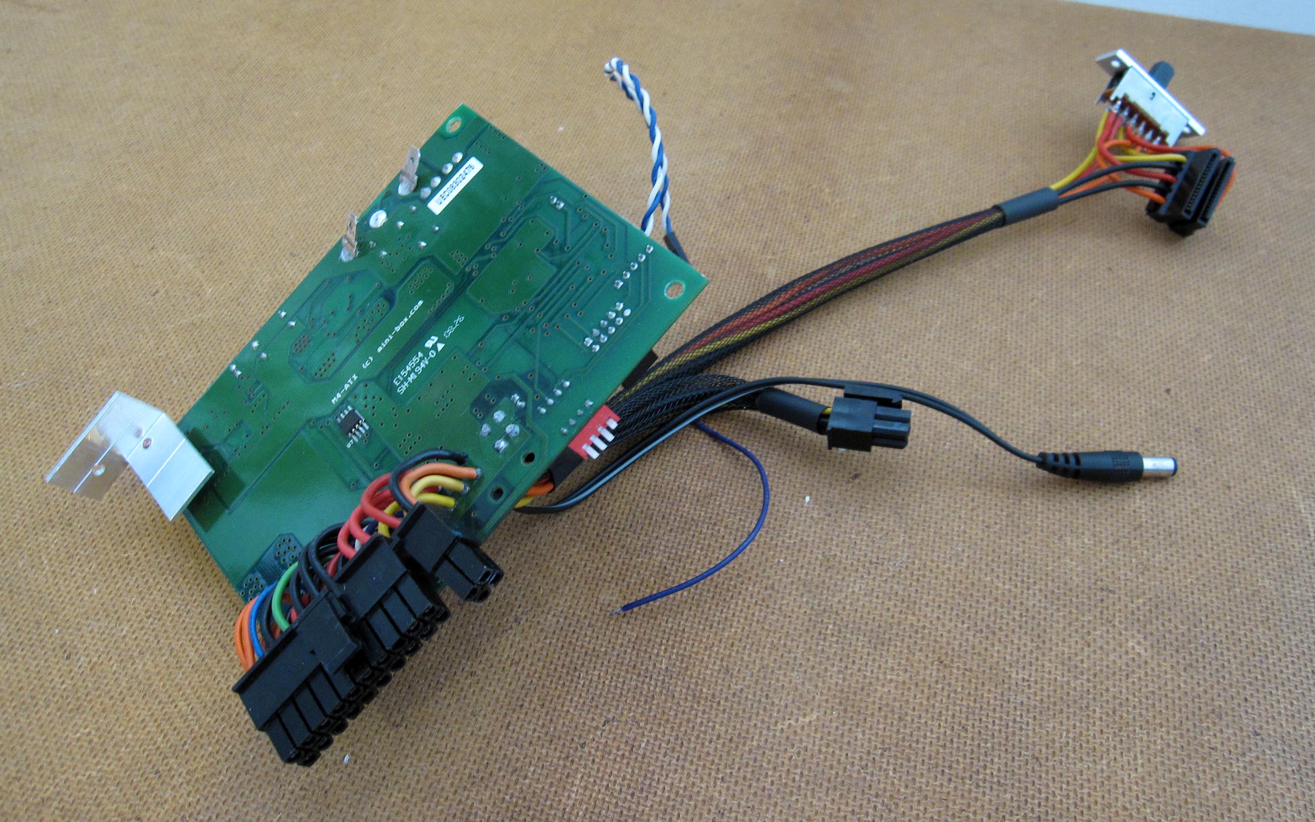 Das Netzteil musste ich umlöten; den 24-poligen Stecker habe ich nicht wie beim Serienmodell ausgeführt. Da dieser Schritt recht aufwendig war, würde ich dem Hersteller folgenden Vorschlag machen: Da jeder seinen Auto-PC individuell aufbaut, wäre es sinnvoll, die Platine ohne Stecker zu liefern, sodass jeder ein Kabelbündel in der benötigten Länge selbst anlöten kann. Zudem könnte die Platine kleiner dimensioniert werden. Zusätzliche Lötpunkte wie GND, 3,3 V, 5 V und 12 V wären ebenfalls hilfreich. In meinem Fall hätte ich so die Stromversorgung der Festplatte sowie der Display-Controller-Platine sauber anlöten können.