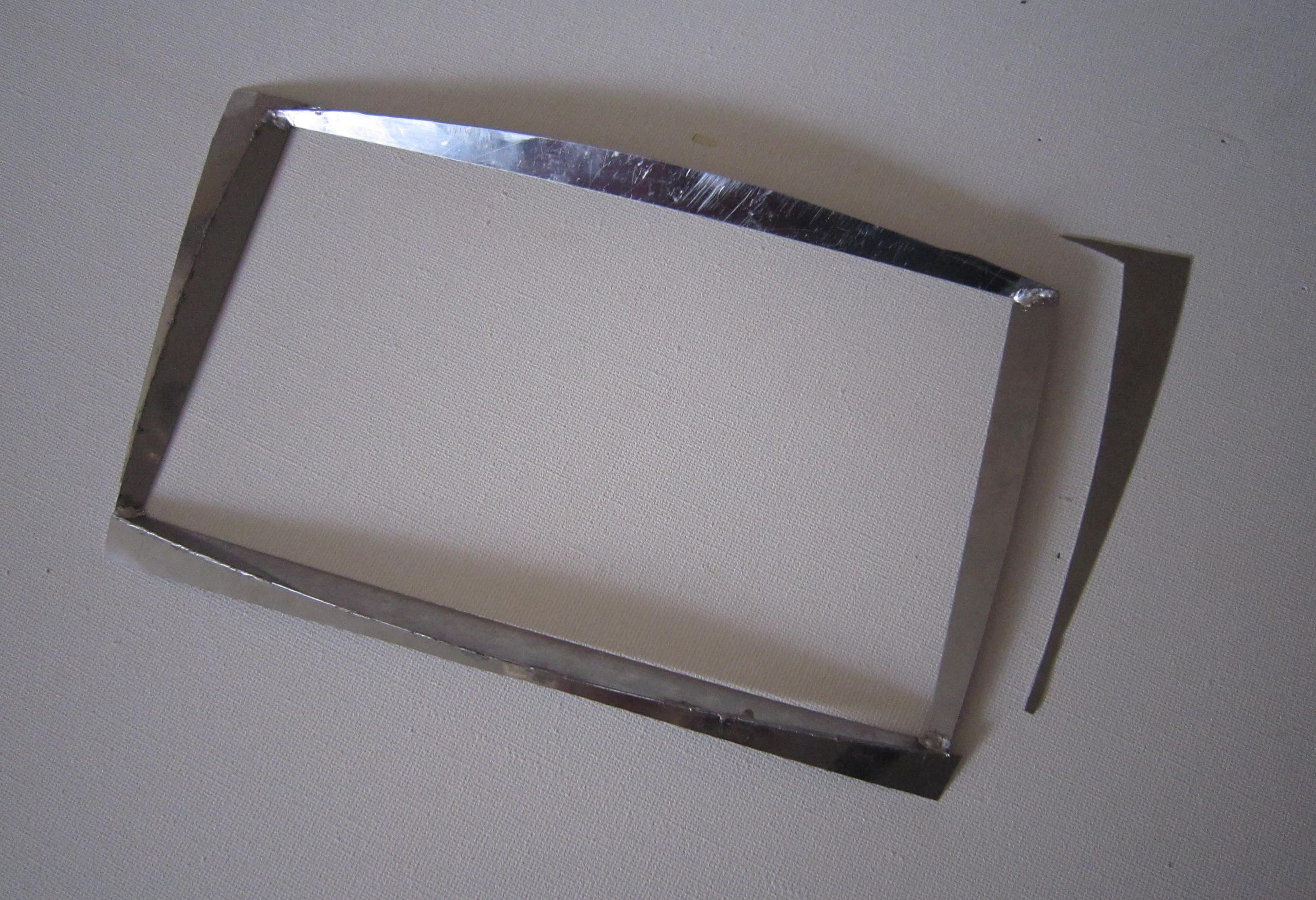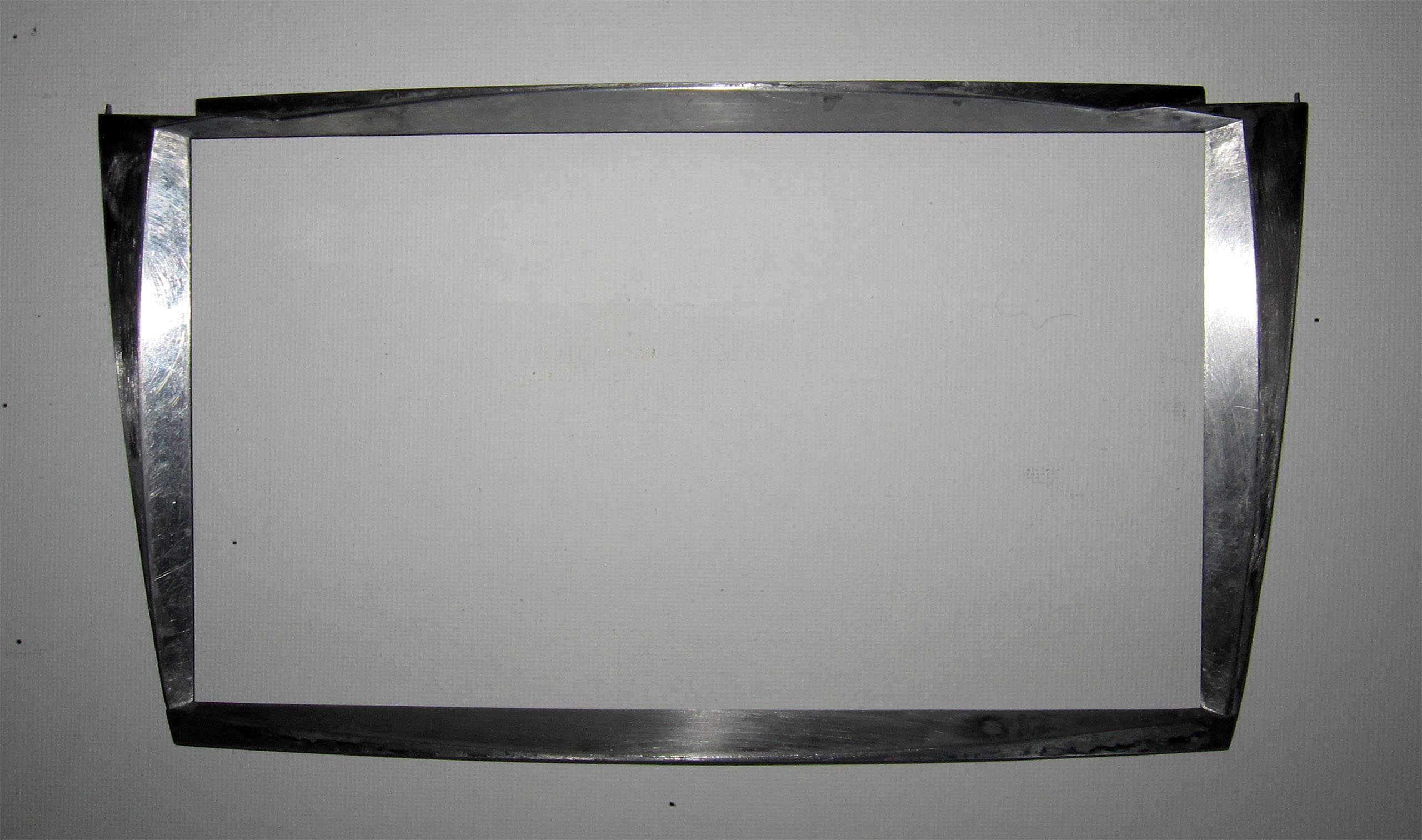 Den Rahmen für den Monitor fertigte ich aus 0,5 mm starkem Edelstahlblech an. Die Einzelteile sägte ich mit der Stichsäge aus, feilte sie anschließend nach, bog sie, verlötete sie mit Zinn, richtete sie aus und verlötete sie erneut. Viel Zeit benötigte ich, damit der Rahmen dicht am Bildschirm anliegt und mit seinen äußeren Kanten die Linien der Nische sowie des Deckels der ausziehbaren Schublade exakt aufnimmt. Nach dieser langen und sorgfältigen Arbeit versah ich das Bauteil mit einer Zwei-Komponenten-Grundierung und lackierte es anschließend.
