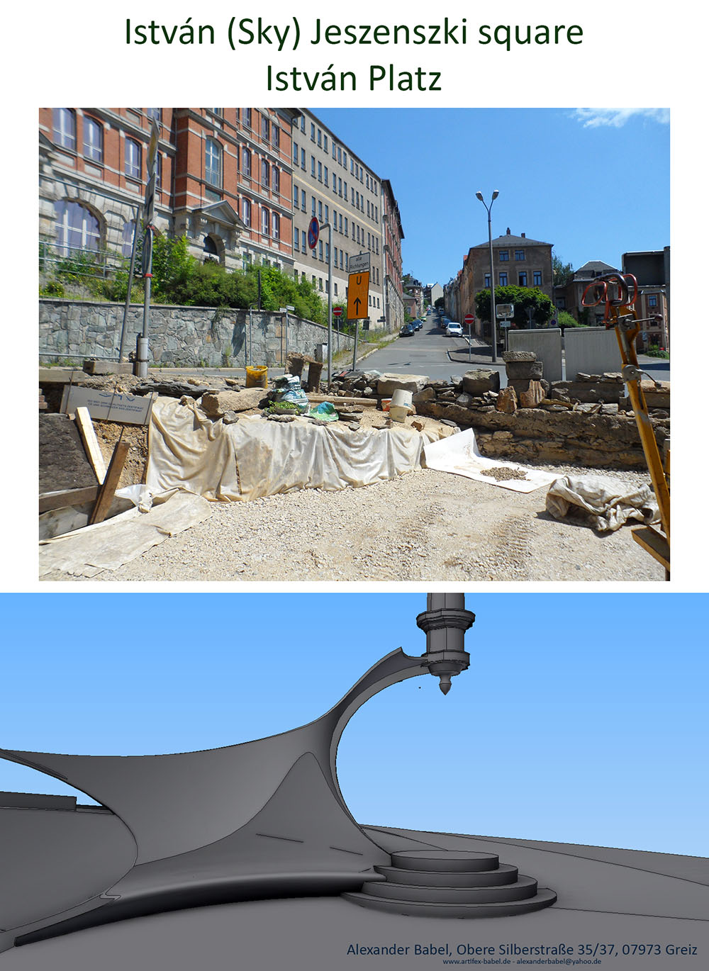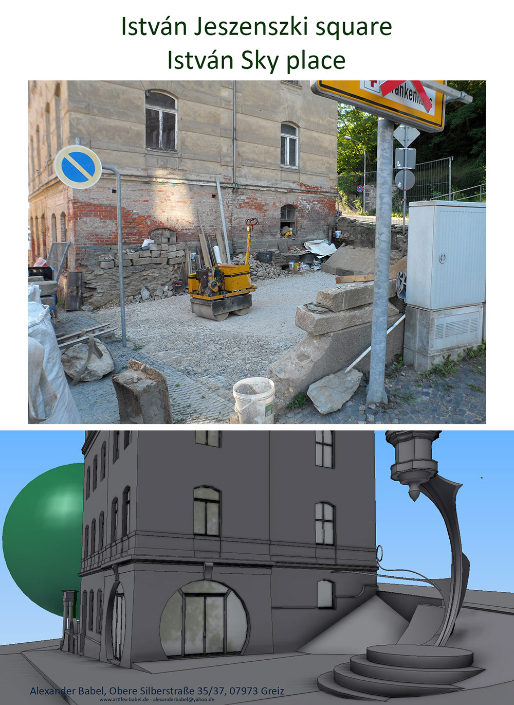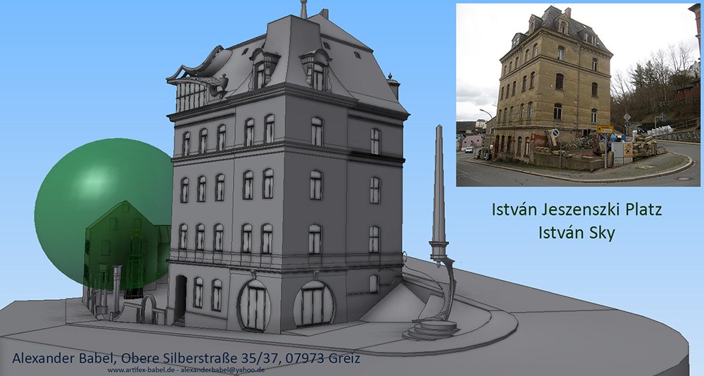 Istvanplatz vor dem Wohn- und Geschäftshaus von Victor Dietel in Greiz — Projekt für Istvan Sky Memorial.