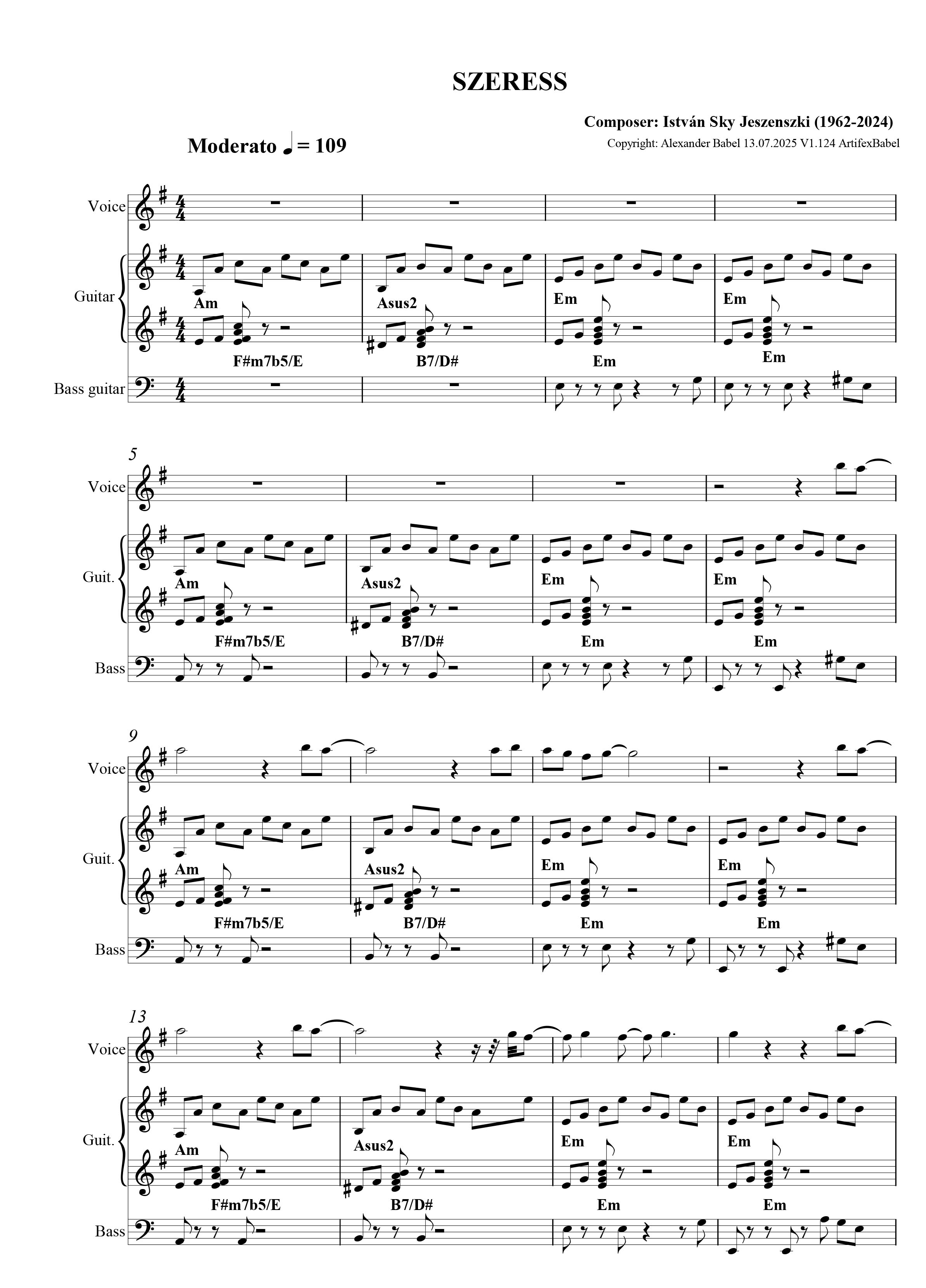 Die Noten zur Komposition „Szeress“ von Istvan Sky können hier als PDF heruntergeladen werden. Gitarrenakkorde sind enthalten.