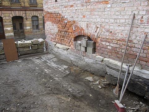 Nun wurde diese anderthalb Meter hohe Aufschüttung entfernt, das Gelände bis auf den Fels freigelegt und auf eine Ebene mit dem Gehweg gebracht.