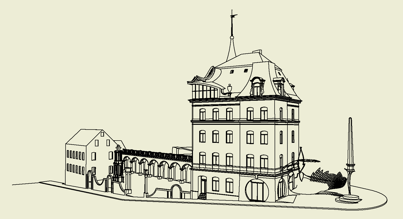 In den ursprünglichen Entwürfen war an dieser Stelle lediglich ein bronzener Obelisk vorgesehen. Um die Konstruktion leichter wirken zu lassen, sollten die Flächen des Obelisken mit leuchtenden Glasflächen versehen werden. Istvan kannte diesen Entwurf. Bei unserem letzten Treffen betrachteten wir gemeinsam die Animation dieser Komposition.