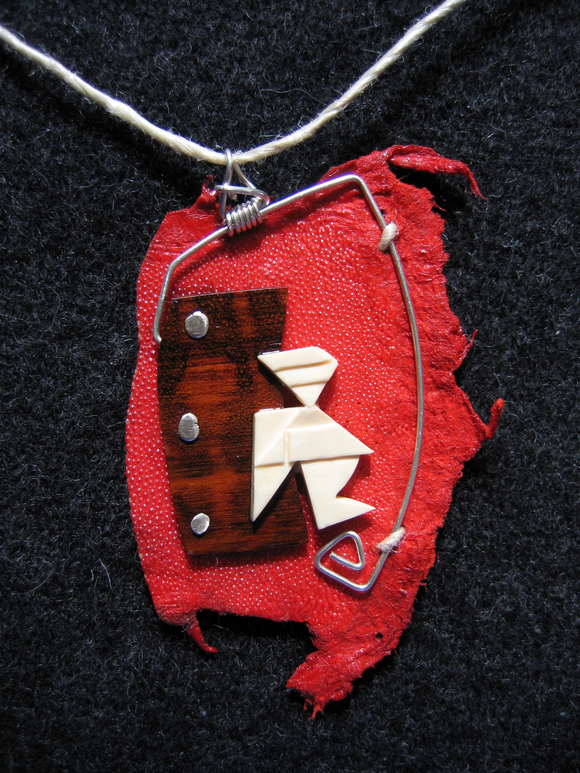 Basis aus Rochenleder, Menschenfigur aus Mammutelfenbein, Schlangenholz, Silber.