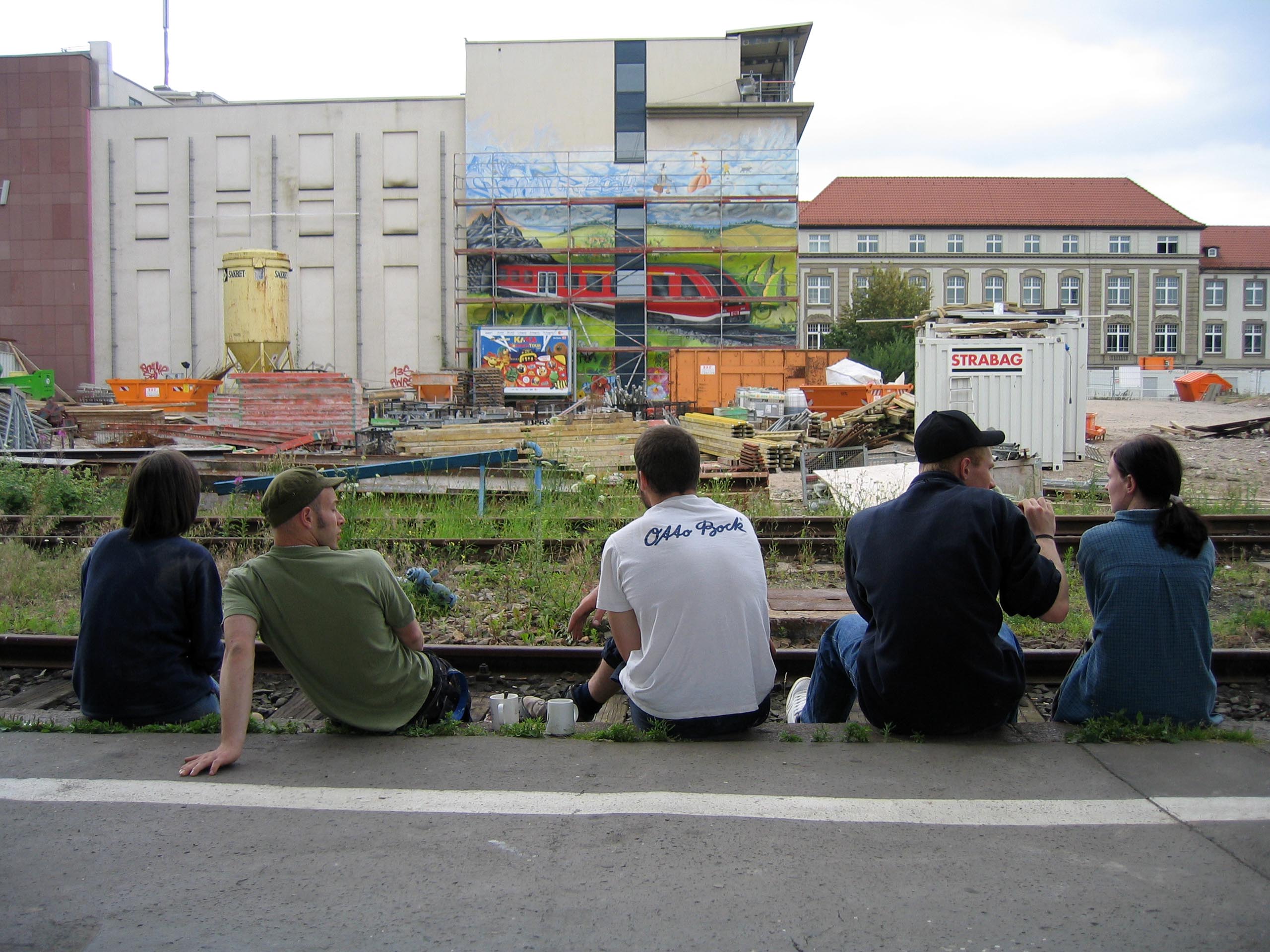 Graffiti – Verbrechen oder Kunst? Das InterCityHotel befindet sich am Bahnhof in Erfurt. Eine seiner Wände zeigte zu den Bahngleisen und war wiederholt Ziel von Graffiti. Was sollte man mit einer schlicht beschmierten Wand tun?