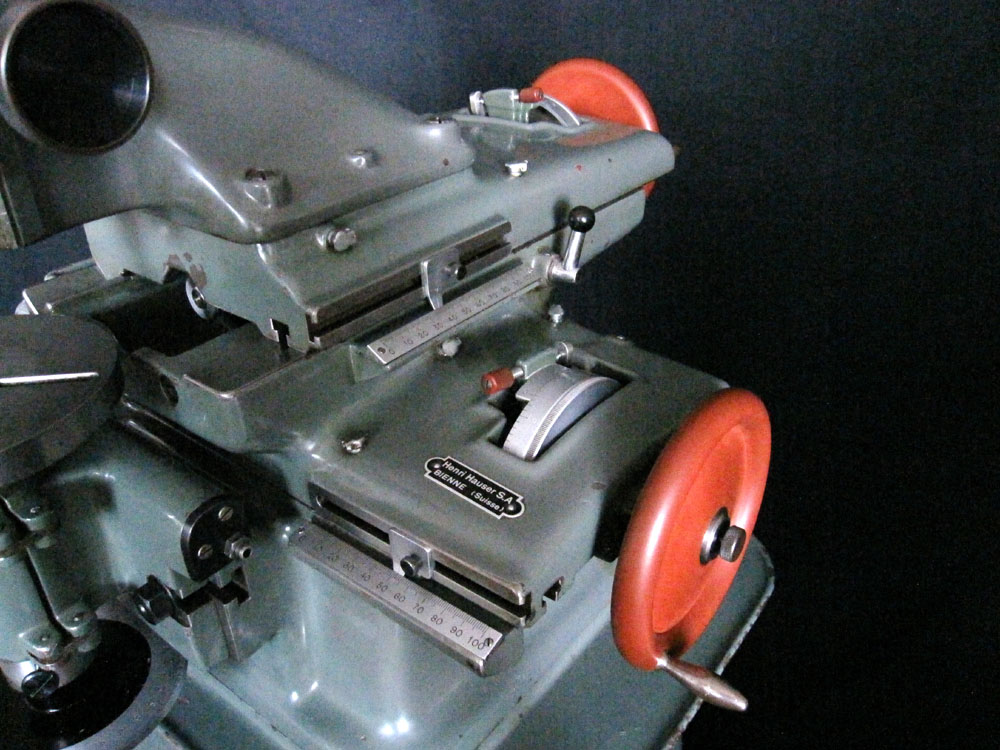 So greife ich auf die bewährte Schweizer Qualität zurück, auf eine Hauser M1. Diese Maschine dient als Koordinatenmaschine, Messmikroskop und Bohrmaschine.