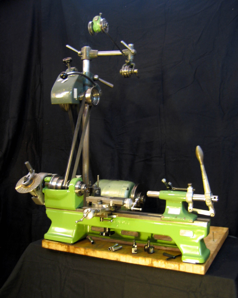 Ich besitze eine solche Werkzeugmacher-Drehbank, Baujahr 1962. Sie ist mit einem Riemenspanner und einer zweiten Motorscheibe ausgestattet. Dadurch ist es mir möglich, auf dieser Drehbank mit Höhensupport nicht nur Drehteile herzustellen, sondern auch zu fräsen. Dazu braucht man einen Kurbel-Kreuzsupport. Zum Spannen des Drehstahls benutze ich einen Schnellspann-Werkzeughalter von Tripan. Zum freihändigen Drehen dient mir eine Handauflage, die ich auf eine optimale Position einstellen kann.