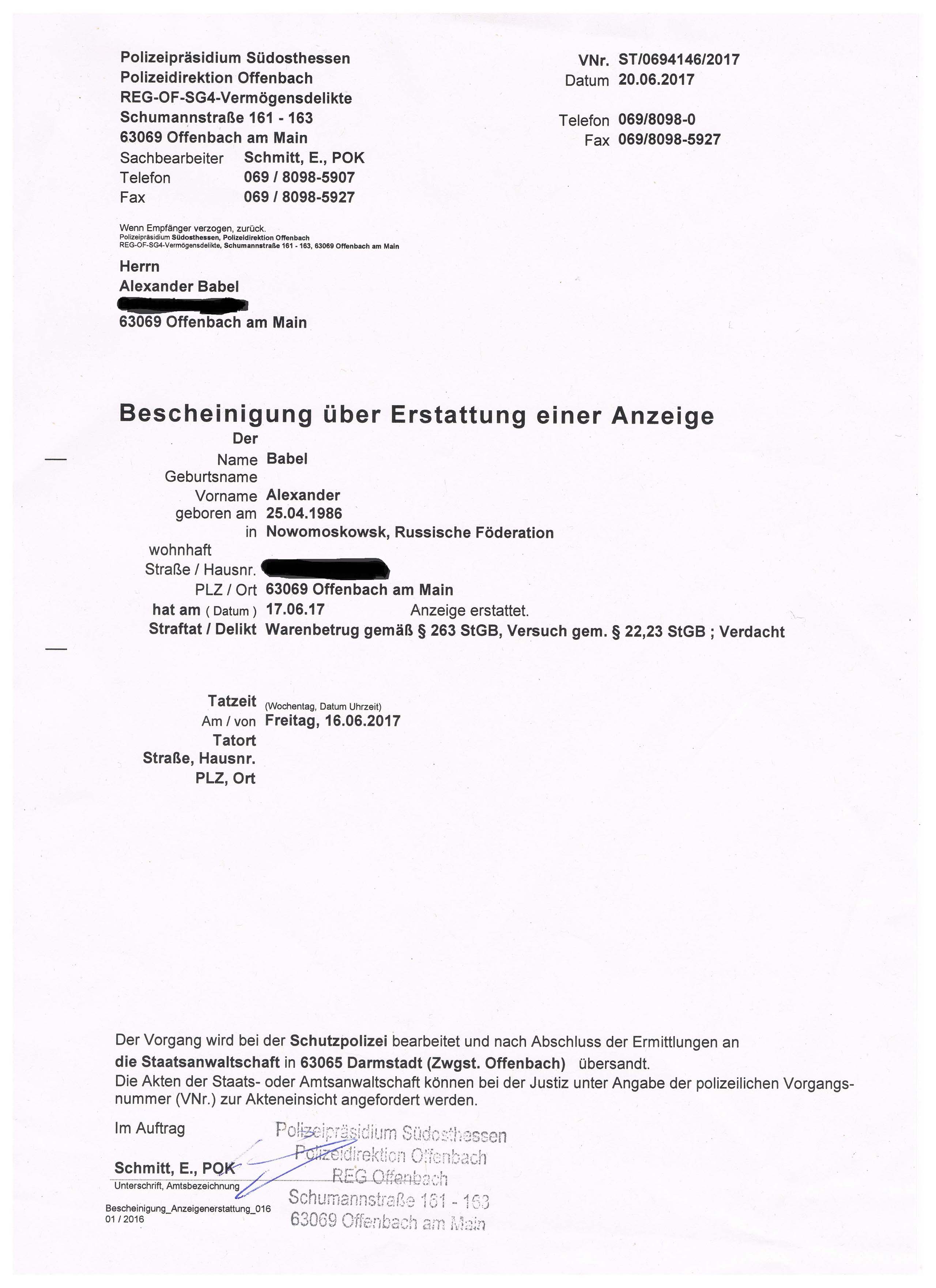 Achtung! Die Anzeige auf Kalaydo ist definitiv eine Fälschung. Die Polizei wurde informiert. Ein Gewindeschneidgerät kann nur bei Alexander Babel erworben werden!