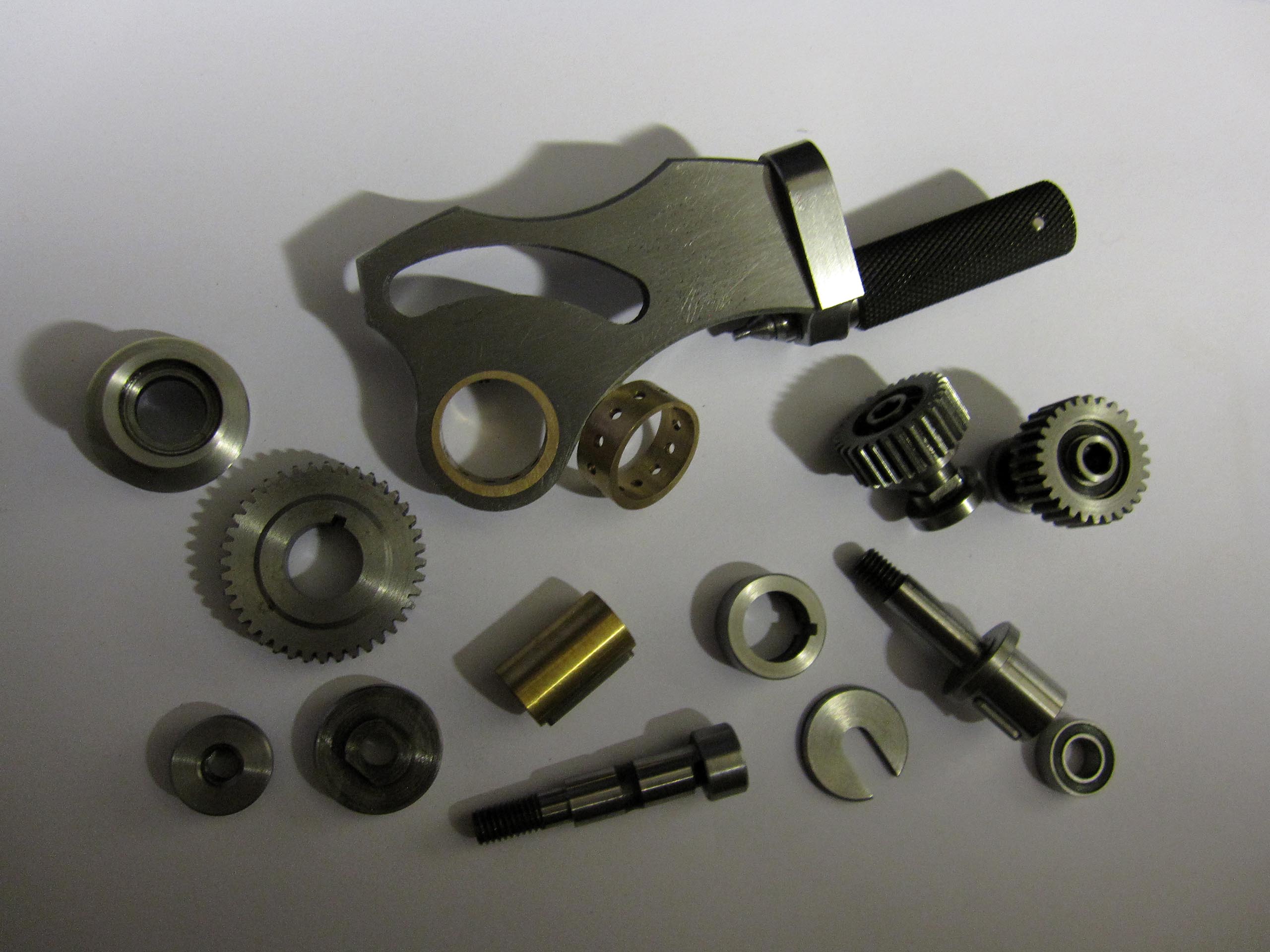 Der Apparat enthält insgesamt etwa 150 Teile, davon habe ich rund 50, wie Lager oder Schrauben, gekauft und dennoch nachbearbeitet. Die hergestellten Teile bestehen hauptsächlich aus C45-Stahl, den ich gehärtet, angelassen, geschliffen, gefeilt, sandgestrahlt oder poliert habe. Auch Fasen wurden angefertigt, manchmal von Hand, und einige Teile erneut auf der Maschine korrigiert. Die Konstruktion musste so geplant werden, dass die Herstellung komplett eigenständig möglich ist.