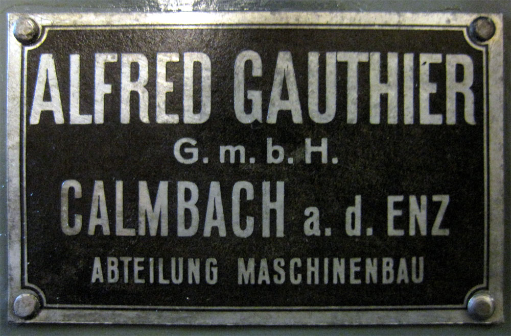 Ich setze in meiner Werkstatt die Abwälzfräsmaschine von der Firma Alfred Gauthier GmbH ein. Das Modell W1 ist aus dem Jahr 1951.
